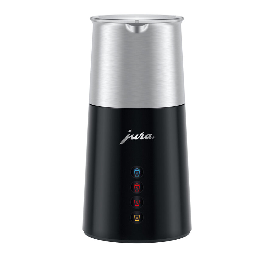 Een bijzonder hoogtepunt is de chocolademelk, die dankzij de krachtige technologie kan worden bereid met stukjes fijne chocoladereep. Het ontwerp van de melkopschuimer maakt indruk met zijn elegante en functionele vormgeving. Met slechts vier symbolen is de bediening eenvoudig en direct. De conische basis zorgt voor een stevige stand en houdt de melkhouder vast, waardoor een stijlvol en harmonieus geheel ontstaat. Met de licht gebogen schenktuit kan de opgeschuimde melk of chocolademelk precies en netjes worden ingeschonken. De melkopschuimer Hot & Cold is de ideale aanvulling op de Pure-Coffee-volautomaten van JURA en zal snel een onmisbare metgezel worden bij de koffiebereiding.