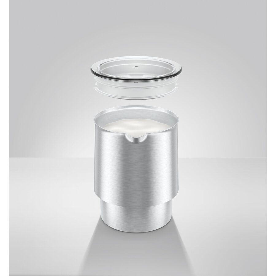 Met een diameter van 13 cm en een hoogte van 21 cm is de melkopschuimer Hot & Cold ruimtebesparend en compact. Hij past harmonieus in elk keukeninterieur en is een stijlvolle aanvulling op de Pure-Coffee-volautomaten van JURA. Dankzij onderhoudsvriendelijke materialen zoals roestvrijstaal en zijn afgeronde vormen is de bak voor melksysteemreiniging bijzonder eenvoudig te reinigen.